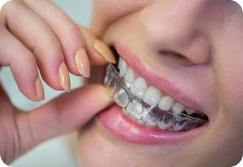 A series of transparent, removable trays that gradually shift teeth without the need for wires.